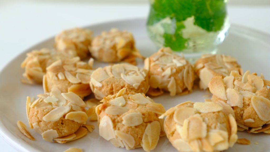 Voici la recette des petits gâteaux aux amandes largement inspirée de celle des ghribas. Vous savez, ces biscuits traditionnels marocains